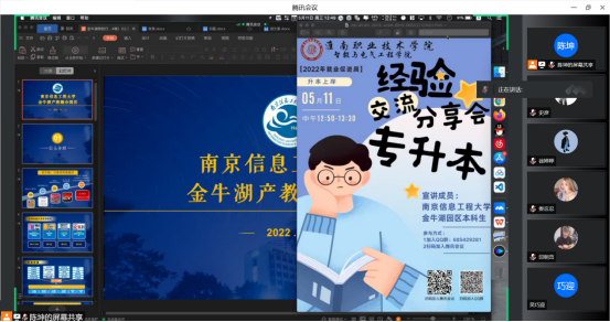为帮助学院2022届专升本学生更好地规划与复习,激发学生升本动力,美高梅平台网站入口于5月11日下午13:00开展了专升本经验交流分享会。本次分享会邀请到2021届计算机应用技术专业毕业生陈坤、黄伟等9名学长们为大家作此次专升本经验交流分享,他们目前就读于南京信息工程大学金牛湖园区。讲座采取线上的方式,为更多同学提供了聆听的机会。