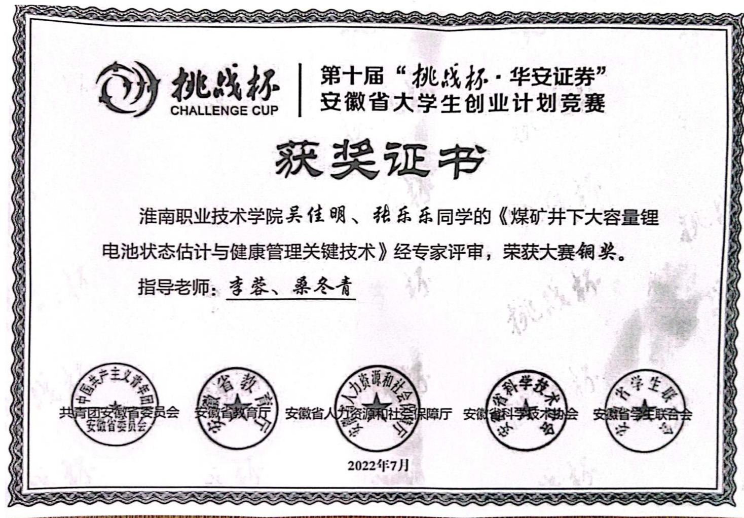 第十届“挑战杯·华安证券”安徽省大学生创业计划竞赛于6月14日至16日在安徽工业大学完成省级决赛,经过评审委员会评审,本次大赛共评出金奖74项、银奖374项、铜奖766项。美高梅美高梅平台网站入口共两支队伍分别荣获银奖和铜奖。