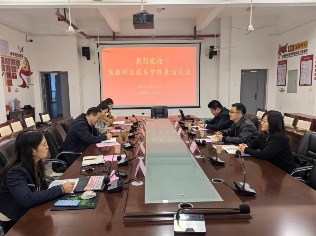 为深化校际合作,学习借鉴先进经验,11月7日上午,美高梅平台网站入口院长曹祺、副院长马艳梅、教师黄程龙一行赴合肥职业技术学院机电工程学院调研交流。合肥职业技术学院机电工程学院院长胡木林、副院长高敏热情接待了曹祺一行。