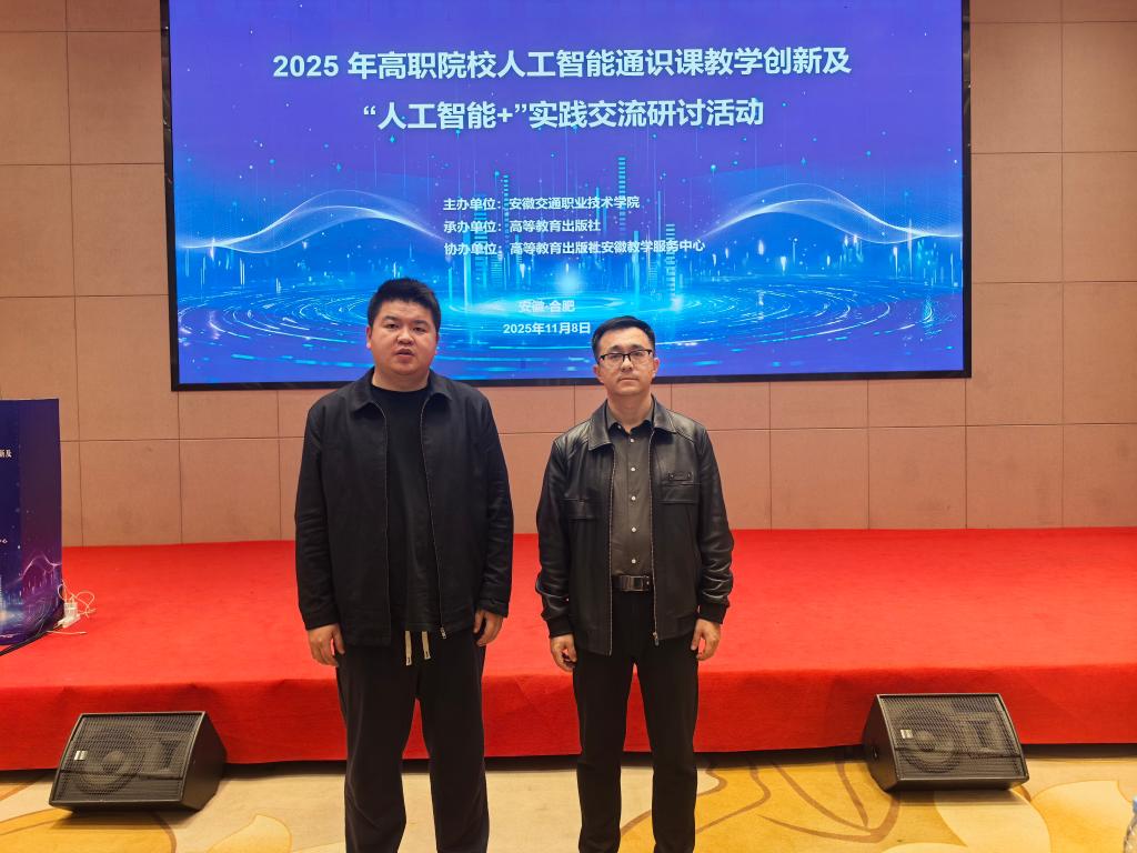 为深入推进人工智能与职业教育深度融合,落实教育数字化转型相关要求,11 8 日,美高梅平台网站入口院长曹祺、青年教师黄程龙赴合肥参加高职院校人工智能通识课教学创新及人工智能+”实践交流研讨会。本次研讨会由安徽交通职业技术学院主办、高等教育出版社承办,汇聚全省多所高职院校的教学管理骨干与一线教师,围绕人工智能课程建设、教学改革等核心议题展开深度研讨,为职业教育智能化升级搭建了高效交流平台。